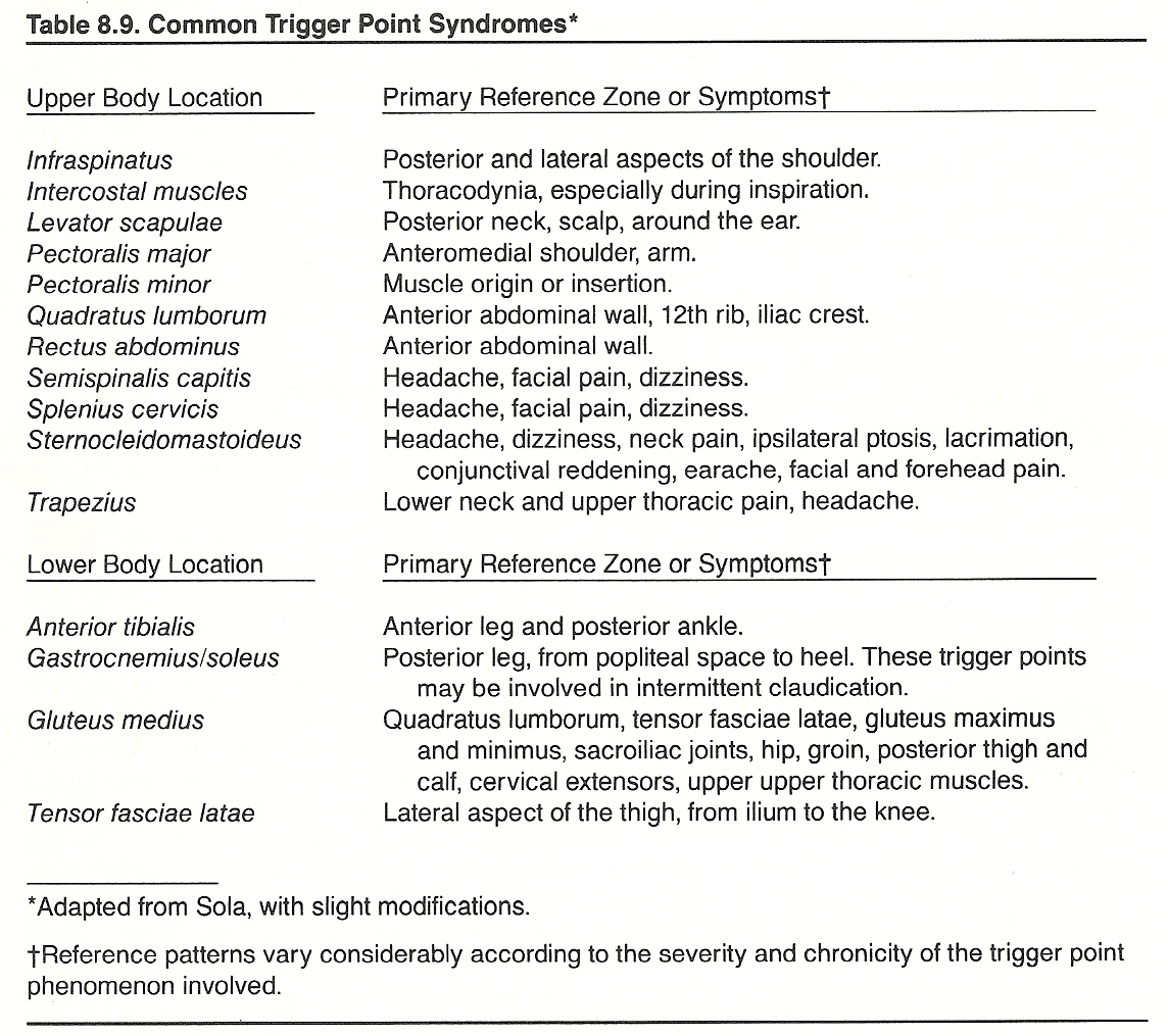 Travell JG, Simons DG: Myofascial Pain and Dysfunction: The Trigger Point Manual. Baltimore, Williams & Wilkins, 1983, p 663.