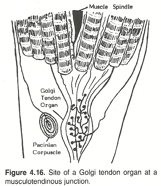 If a tendon of an agonist muscle is tapped, the muscle and the spindle within it are lengthened and this excites the primary spindle receptors (the annulospiral endings) at the ends of the Ia fibers. This causes volleys of action potentials to course along many Ia fibers to the spinal cord wherein they excite many alpha motor neurons, whose action potentials, in turn, cause the muscle to contract. This concise explanation of these mechanisms by Prichard goes on to note that the synapse transmitter between the Ia terminals and the motor neuron pickup is unknown but thought to be of an electrical rather than chemical nature.