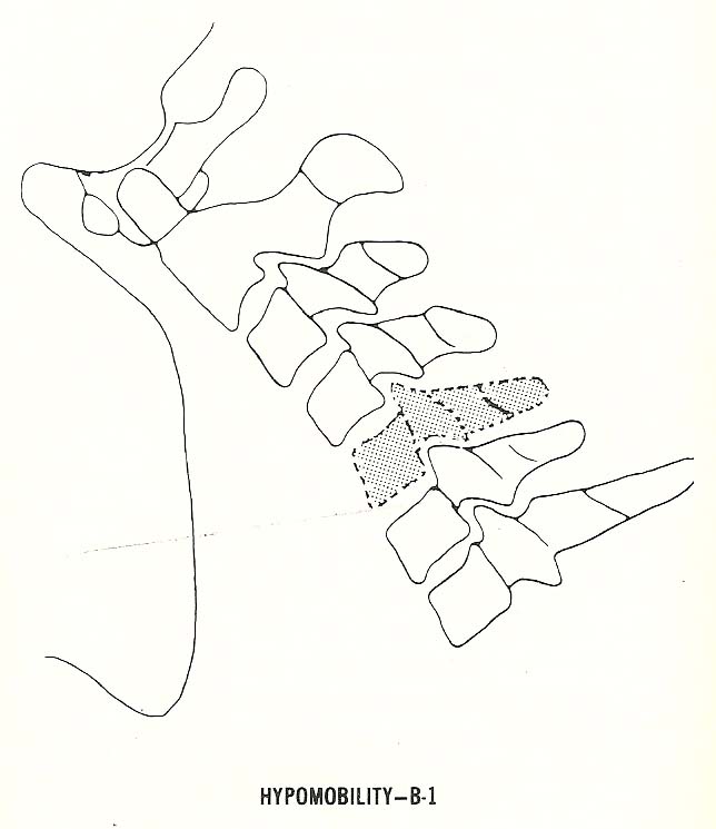 illustrates extreme hypomobility of nearly every cervical motion unit (B-1)
