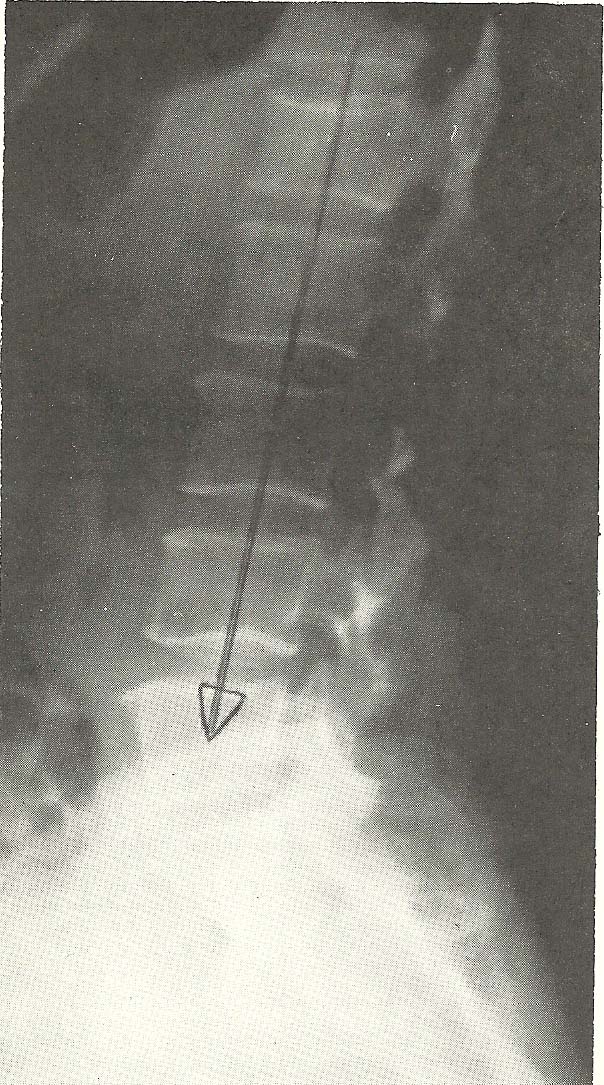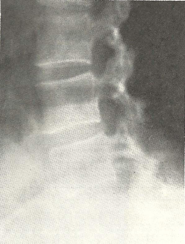 The lateral lumbar film shows mild degenerative change at the L3 disc,