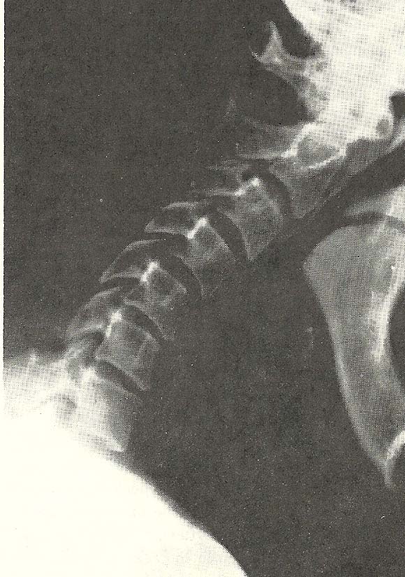 altered cervical curve (hyperlordosis) shown in the neutral lateral film is
