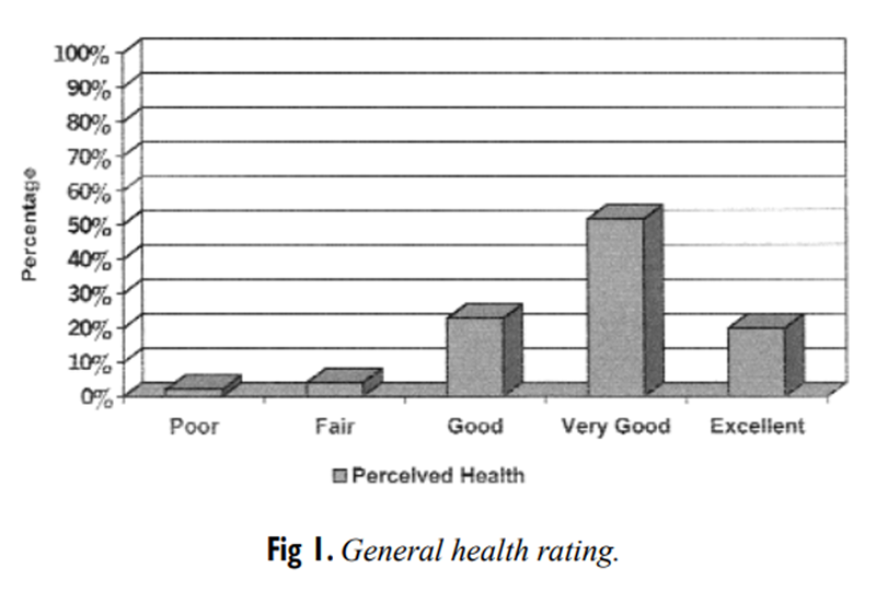 regarding general health, 22.7% rated their health as good, 51.5% as very good, and 19.8% as excellent (Figure 1).