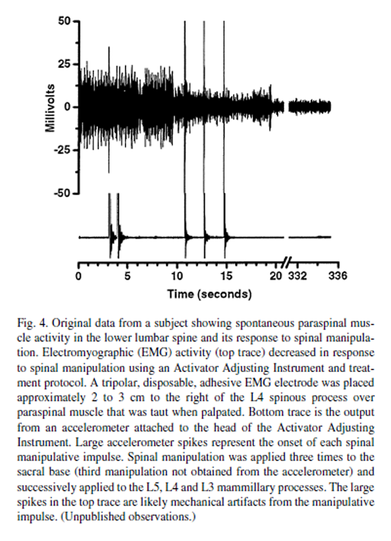 Herzog W, Scheele D, Conway PJ. Electromyographic responses of back and limb muscles associated with spinal manipulative therapy.