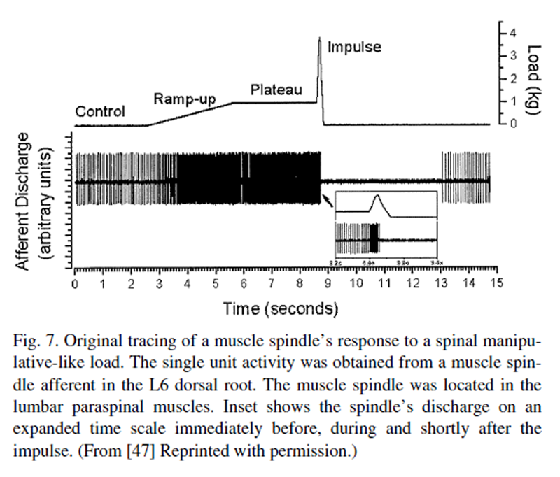 BACKGROUND CONTEXT:        Despite clinical evidence for the benefits of spinal manipulation and the apparent wide usage of it, the biological mechanisms underlying the effects of spinal manipulation are not known. Although this does not negate the clinical effects of spinal manipulation, it hinders acceptance by the wider scientific and health-care communities and hinders rational strategies for improving the delivery of spinal manipulation.