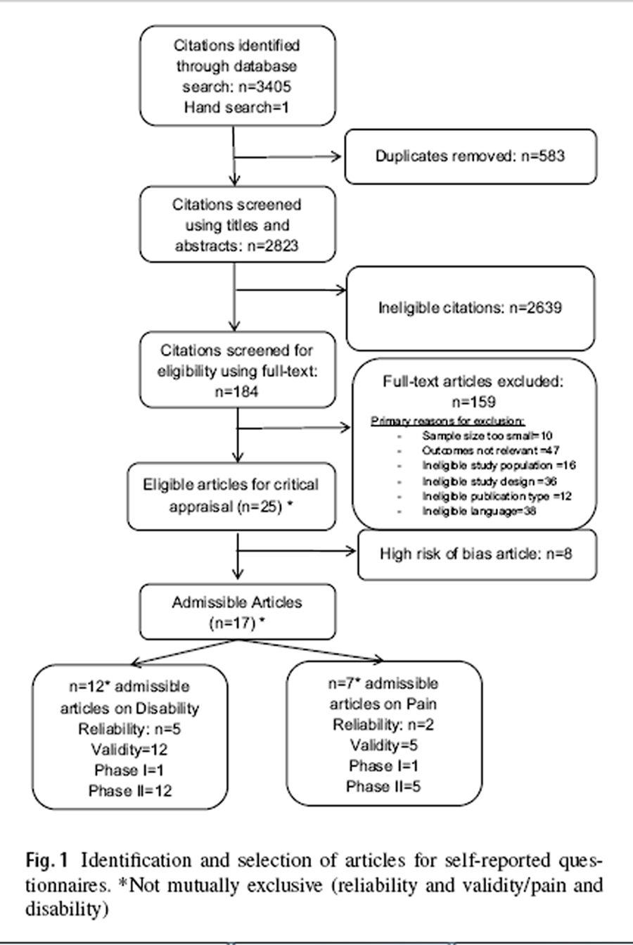 (2) reliability and/or validity study of self-reported questionnaires for pain and/or disability;