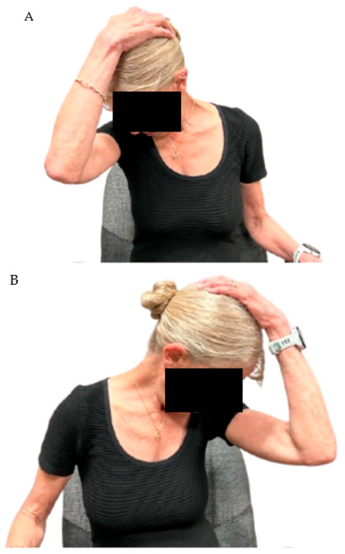 Int J Environ Res Public Health 2026 (Jan 19); 23 (1): 120 Figure A2. Side neck stretches. (A): Right side stretch, (B): Left side stretch. Images of the first author are by Carson Robertson.