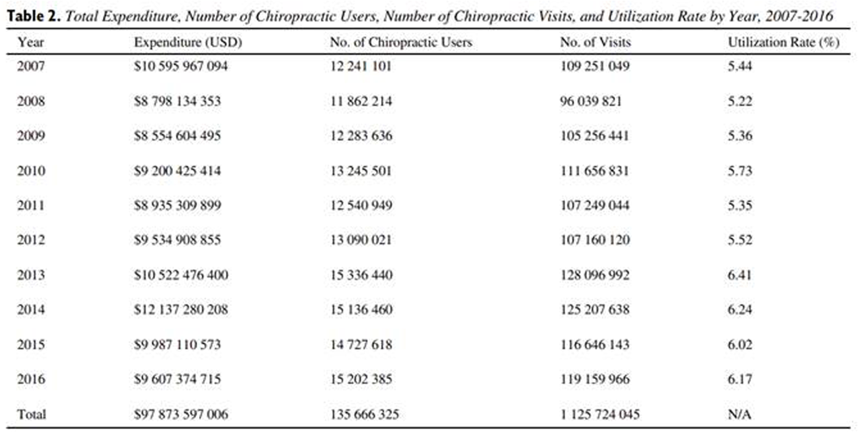 1) an increase in the utilization of chiropractic care from 2007 to 2016,
