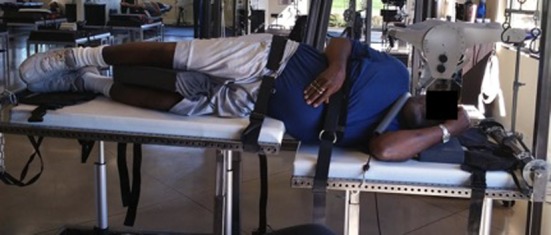 Gait rehabilitation was also prescribed utilizing the PowerPlate (Northbrook, IL, USA). The patient would lay on the PowerPlate in the prone position for two minutes while laying on the forearms to force an extension into the torso; the vibration platform adds intensity to the stretch. [26]