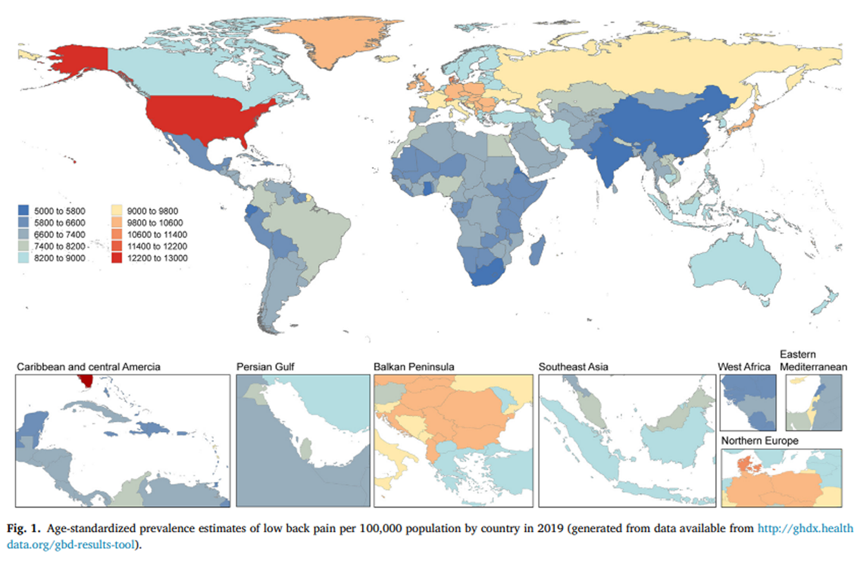 The translational potential of this article: Due to the high prevalence and heavy burden of LBP globally, it is important to update its epidemiological data. This systematic analysis provides researchers and healthcare policy makers with up-to-date, comprehensive and comparable information on global LBP burden, which is of clinical translational significance.