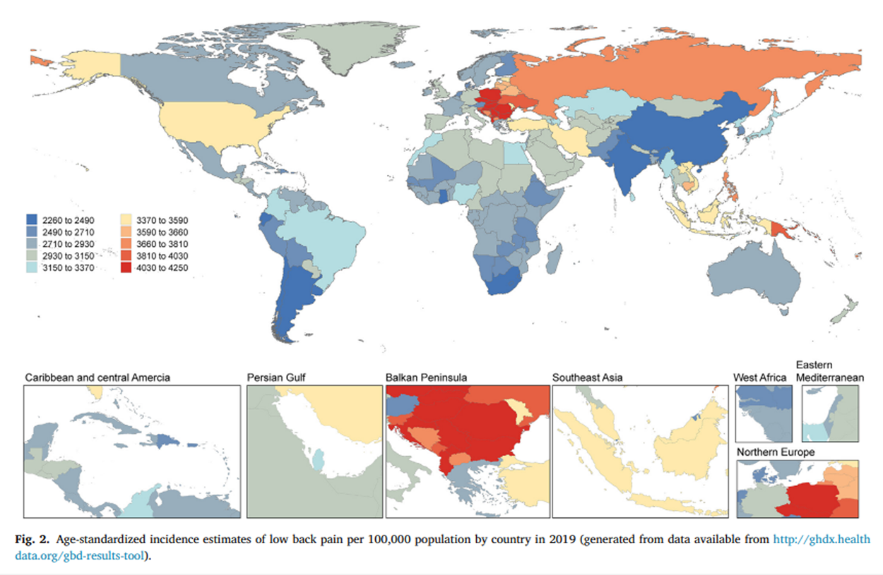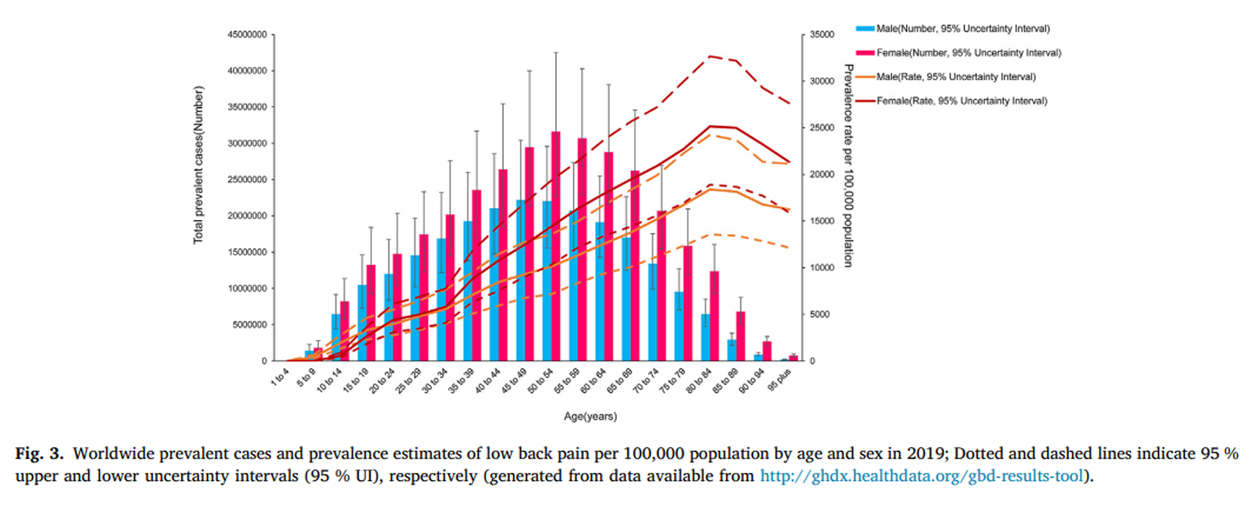 Methods: Publicly available modelled data and methods were obtained from the Global Burden of Diseases (GBD) study 2019, and used to evaluate the global burden of LBP through a systematic analysis.