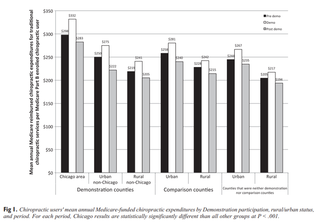 Furthermore, in the post-demo period, Chicago area DCs continued to be reimbursed at least 17% more per patient by Medicare than DCs in other urban counties.